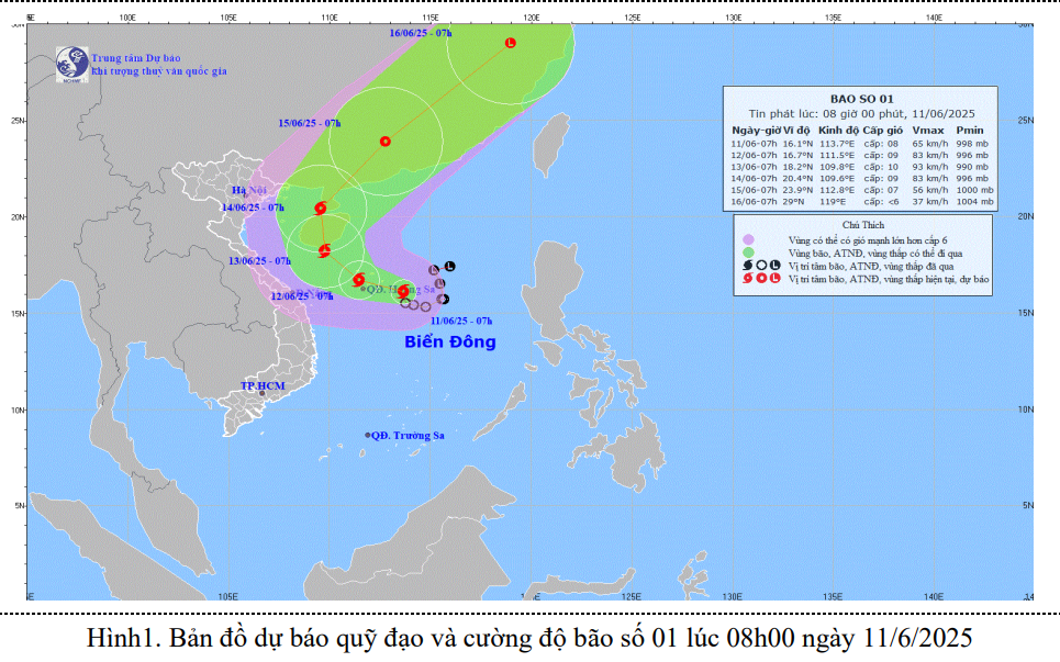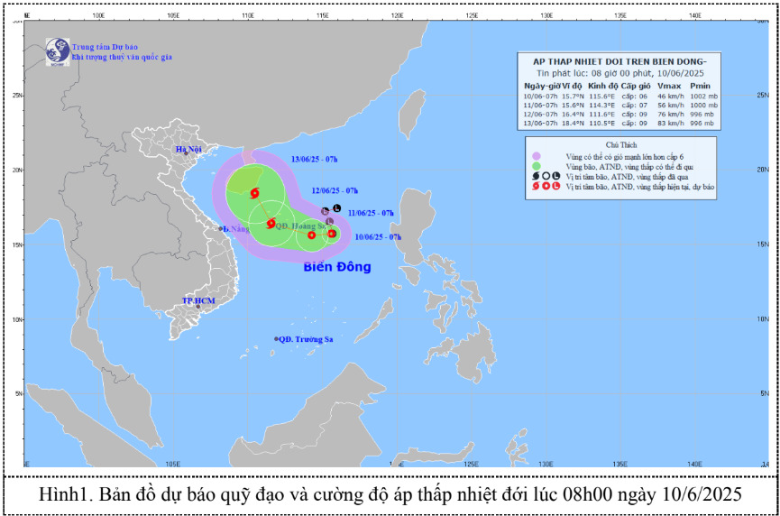 lúc 8h ngày 10/6/2025 của Đài KTTV Quốc gia, hồi 07 giờ ngày 10/6, vị trí